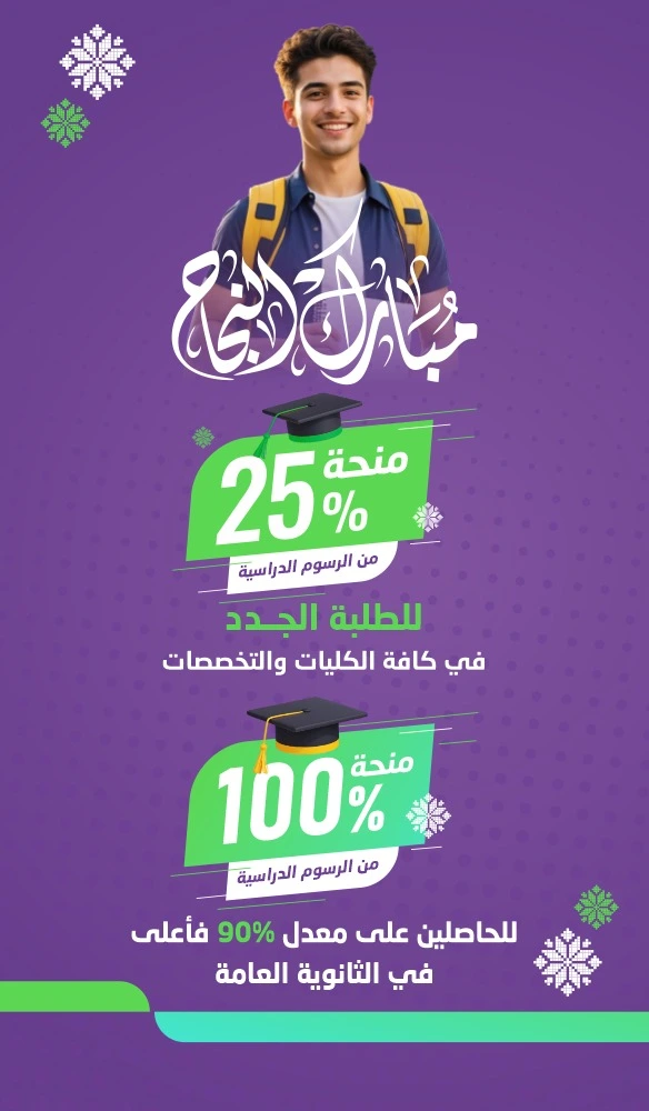 نلتزم بتقديم تعليم أكاديمي رائد يجمع بين المعرفة النظرية والتطبيق العملي، لنُمكّنــــك من بناء مستقبـــــل مهني ناجح والمساهمـــــة في خدمــة مجتمعك.